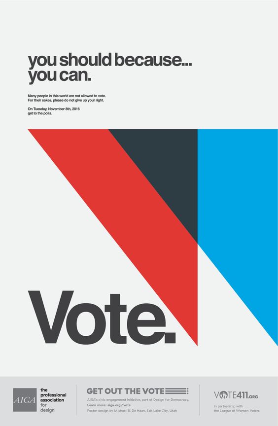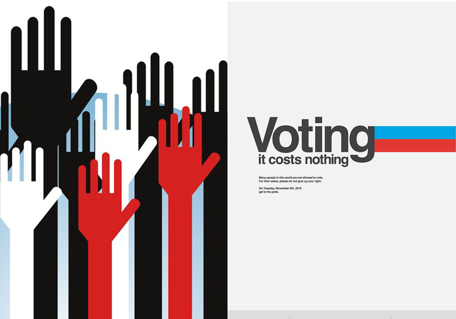 Jako dobrą przeciwwagę dla przaśności, przedstawię plakaty stworzone w ramach AIGA. Te prace udowadniają, że kreacje wyborcze mogą łączyć dobry smak, design i kreatywność w najlepszym tego słowa znaczeniu. Poniżej kilka przykładów, więcej znajdziesz w galerii na końcu wpisu.